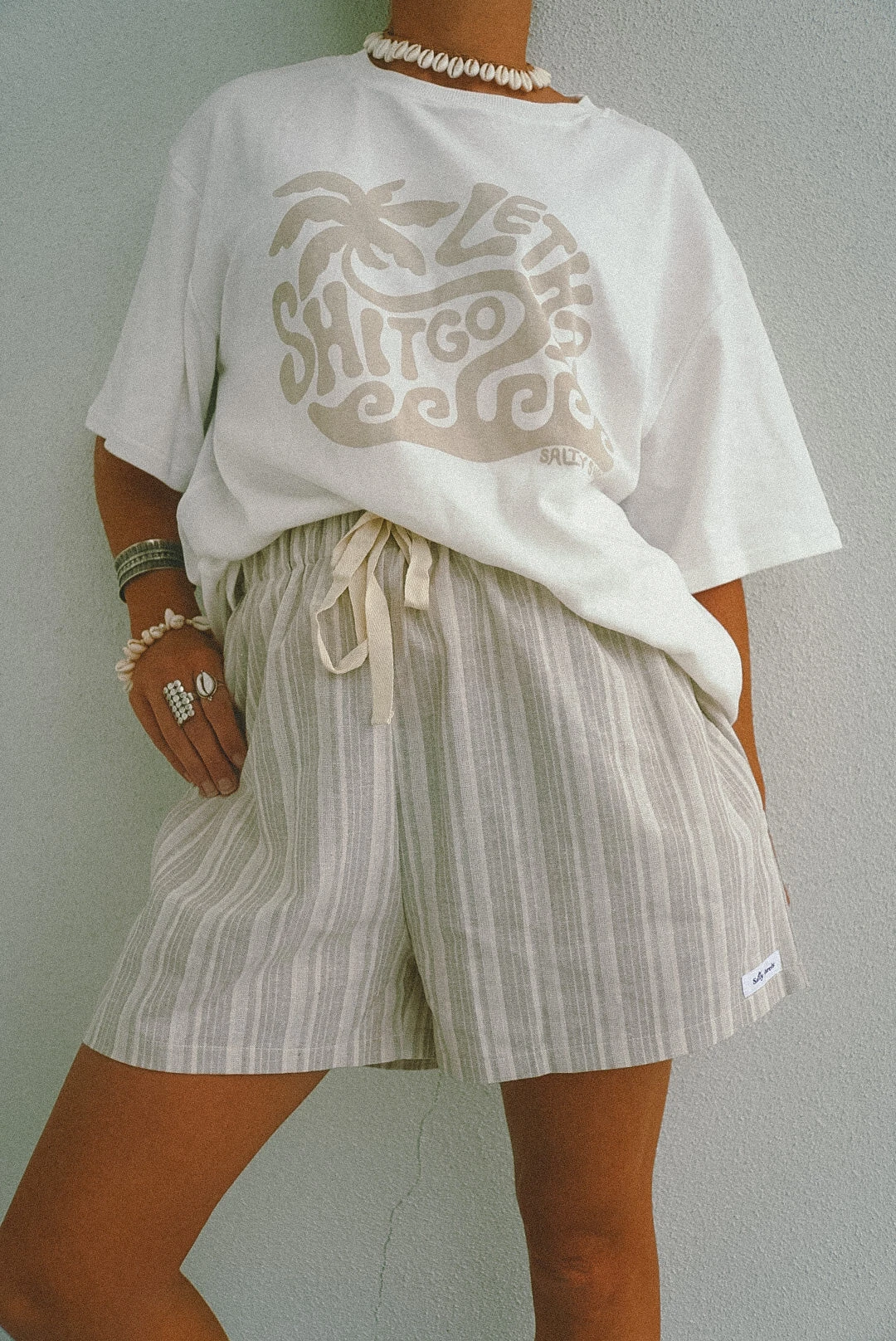 Casual , cool & comfort in our Salty Summer beach short. Designed with a cotton linen blend, thick but lightweight texture, perfect to dress up or down in with its super high waist and relaxed style.