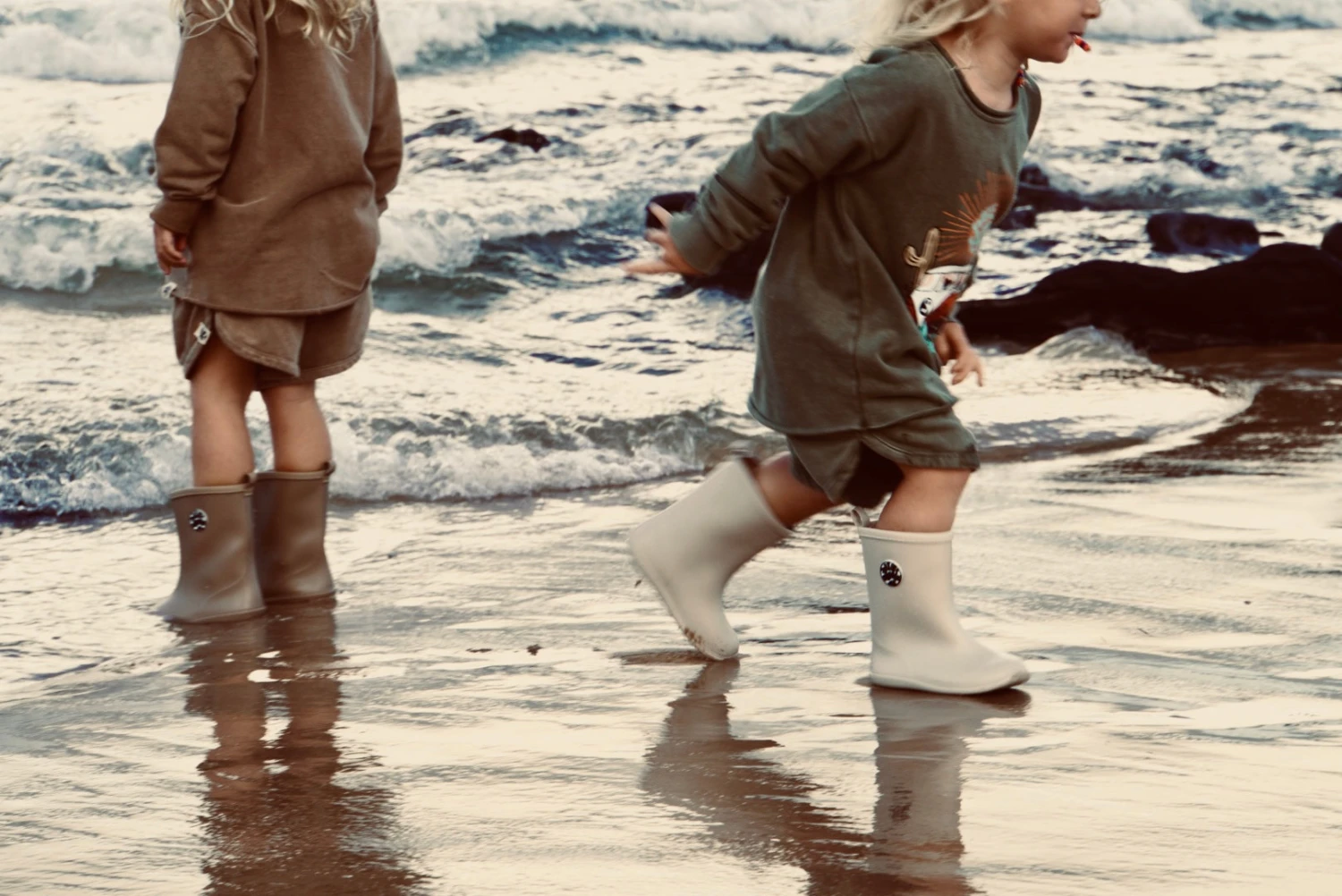 The ultimate gumboots to encourage those tiny legs on big adventures! If your groms are like mine, then there is nothing cooler then stomping puddles or adventuring in big gnarly boots! Designed in two neutral tones, waterproof of course, with our very own branded logo for added style. These are a lightweight comfortable boot, and start from approx 12 months of age.