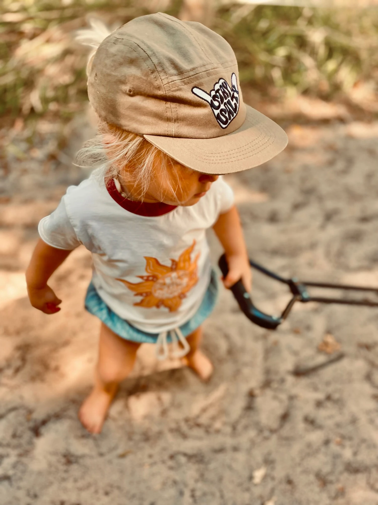 As our epic saying goes ‘stay salty’ !! Endless summer vibes all year round with our stone wash 5 panel caps for your whole salty tribe. Even better , these go with so many of our threads , choose your combo, you can’t go wrong !