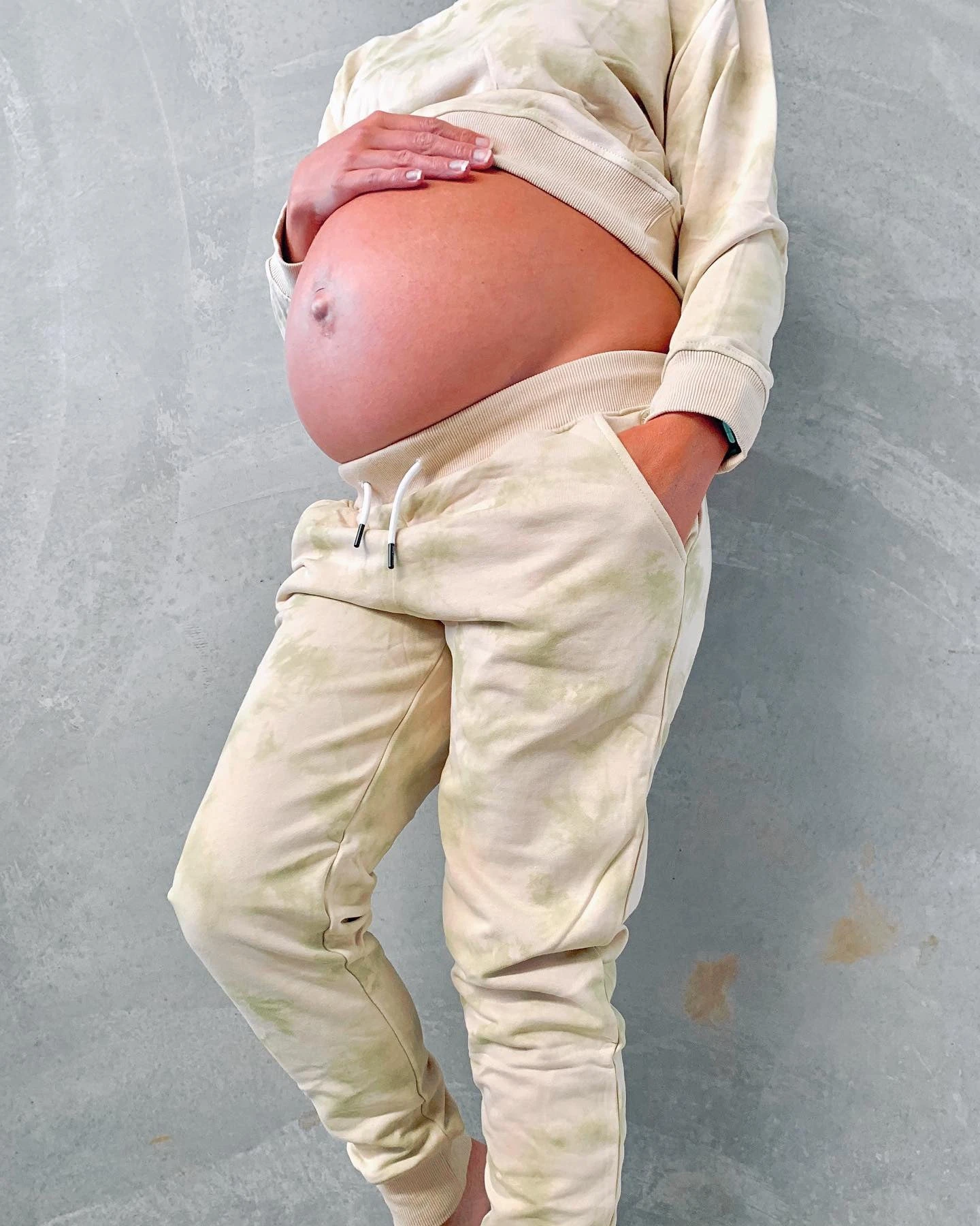 Ash is normally a size small and 57kg , however is currently pregnant at 67kg, 164cm tall and wears size small still on her hips for a more comfortable fit